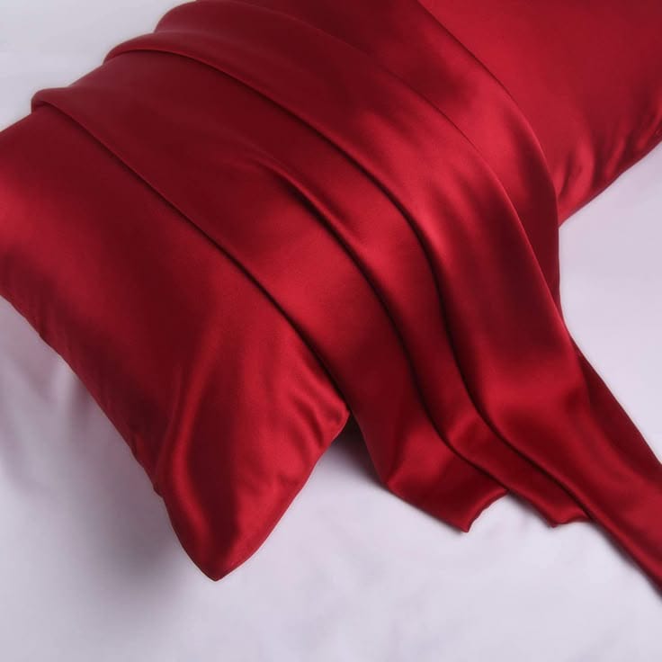 Red Satin Silk Pillowcase (18″x26″ King) Crafted from 100% imported satin silk, this ultra-soft, cooling pillowcase prevents hair frizz and skin creases while you rest.